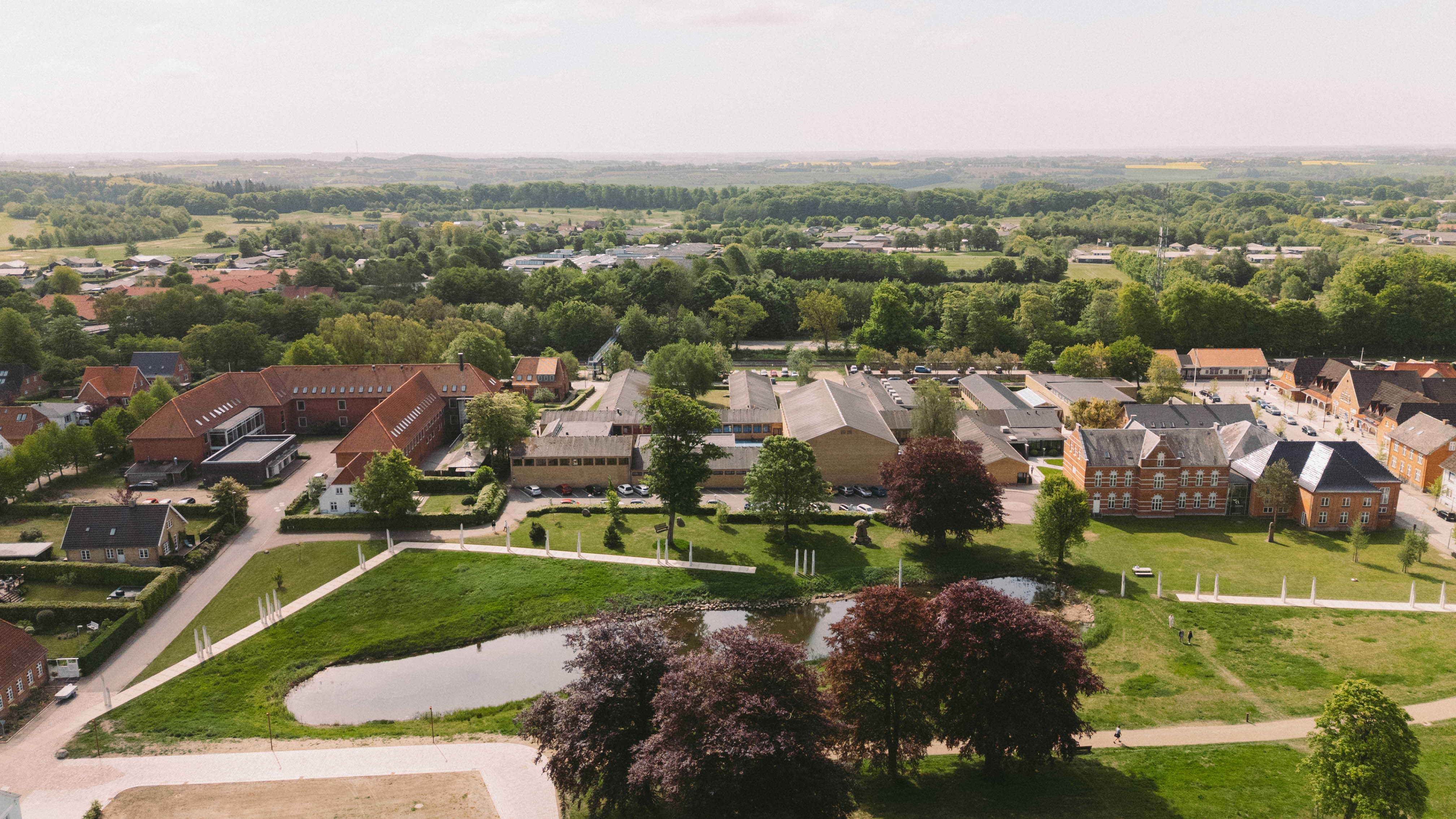 Campus Jelling set fra oven på en solskinsdag